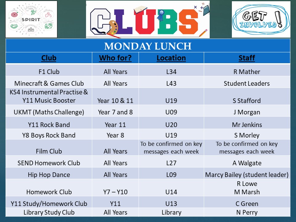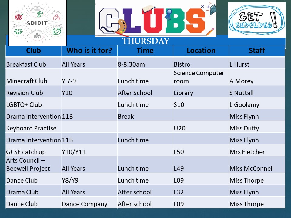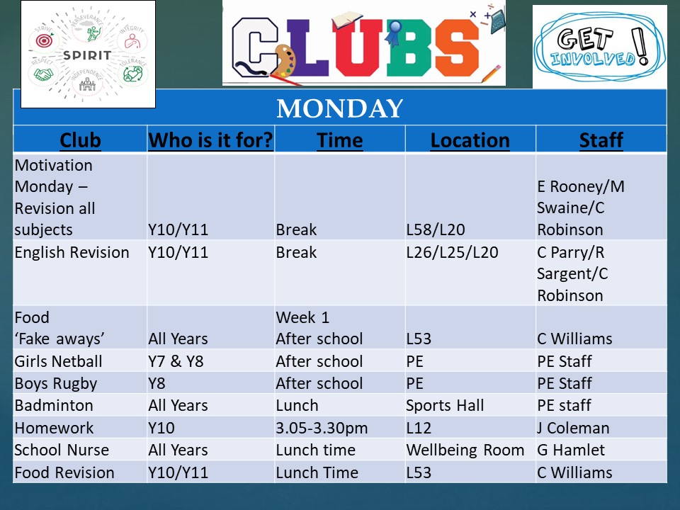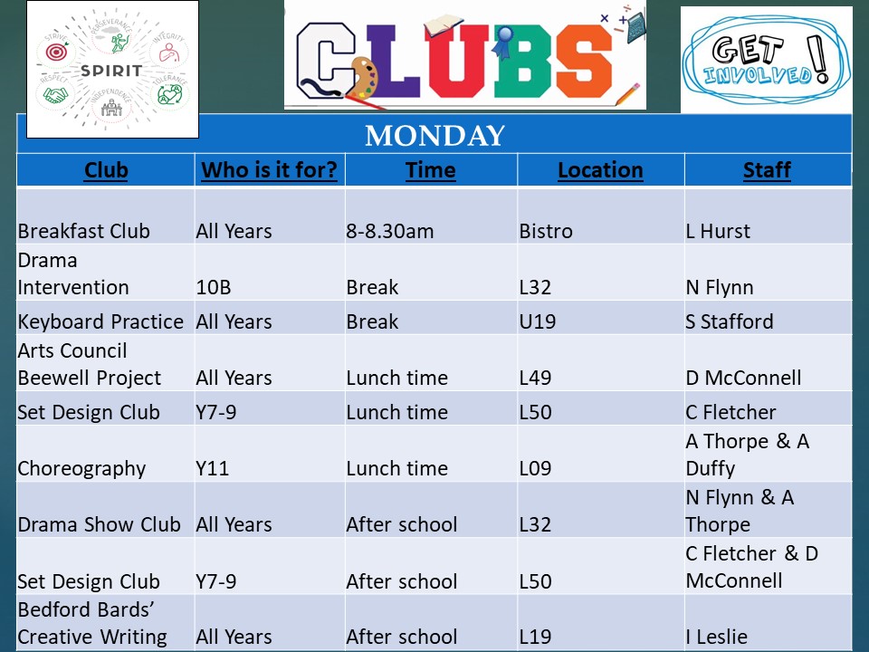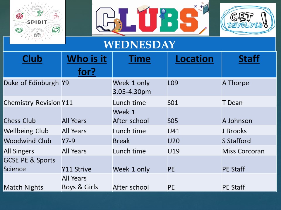 EXTRA CURRICULAR CLUBS 2025-26 (TERM ONE)