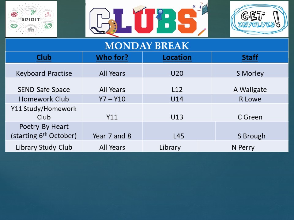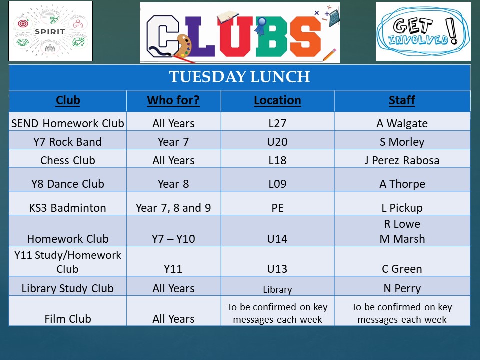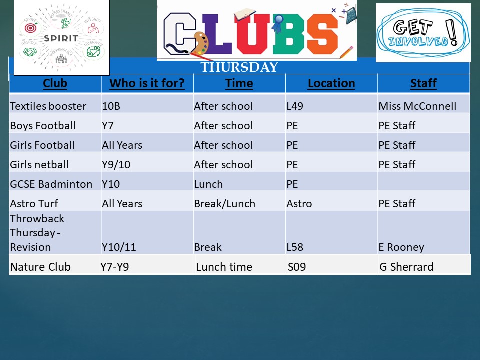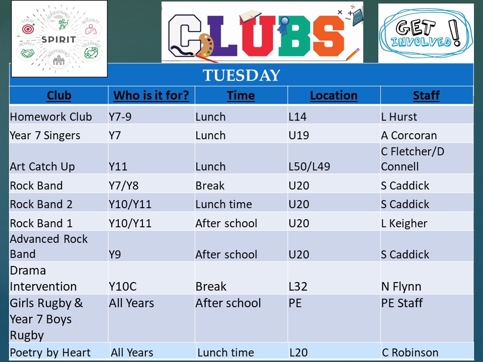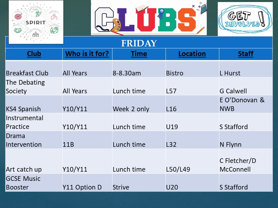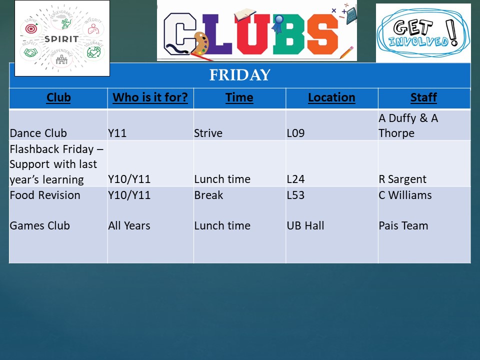 EXTRA CURRICULAR CLUBS 2025-26 (TERM ONE)
