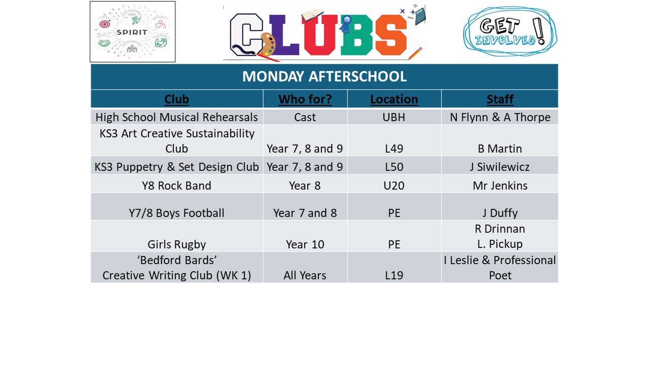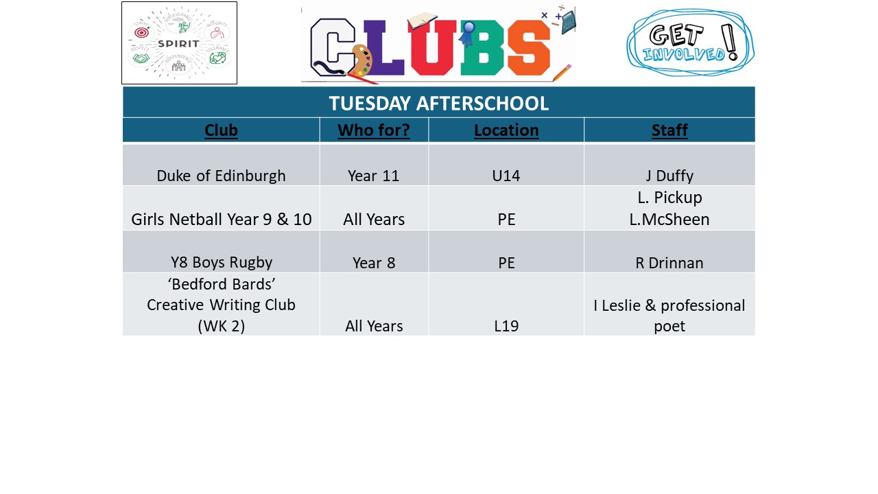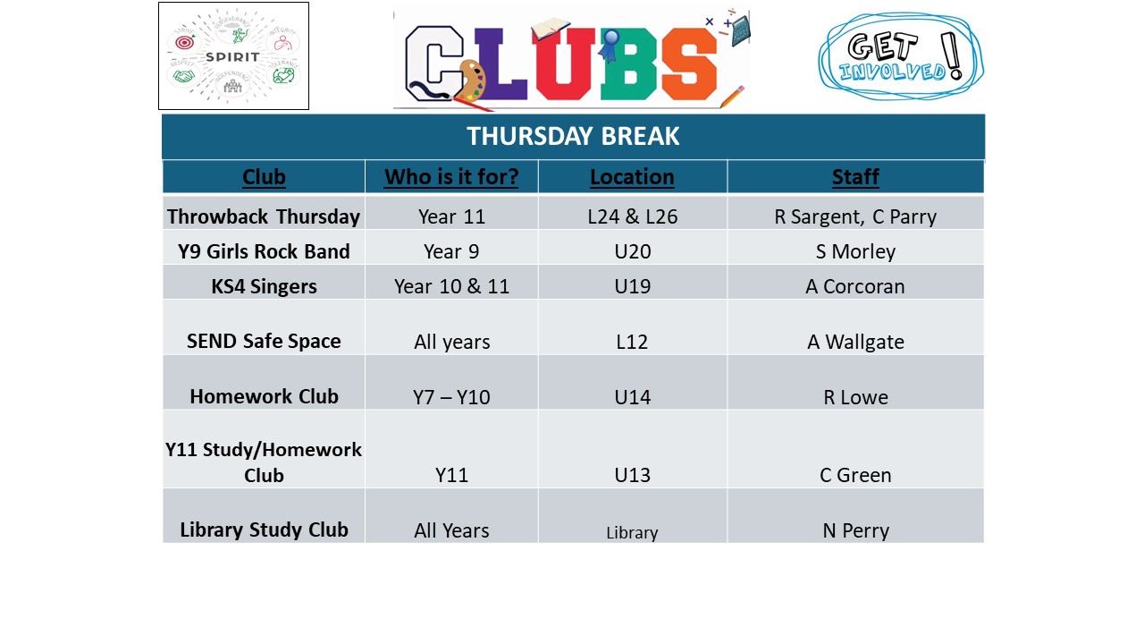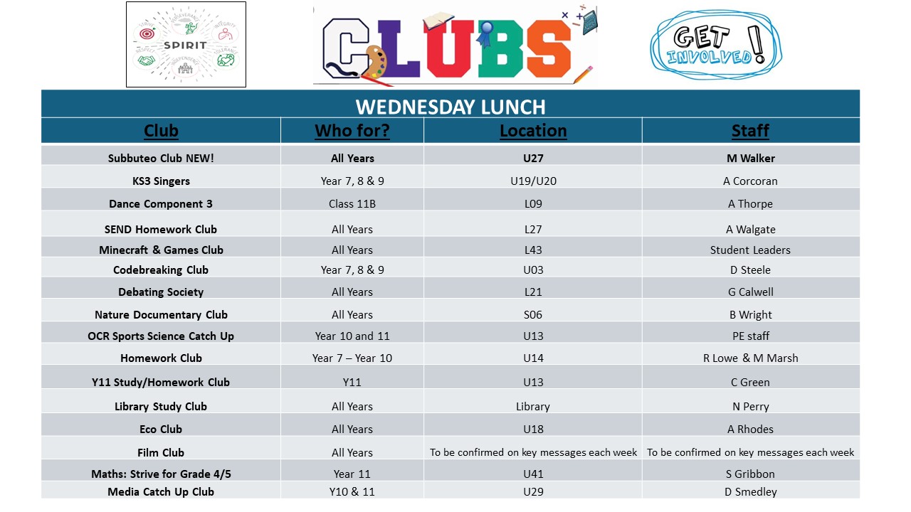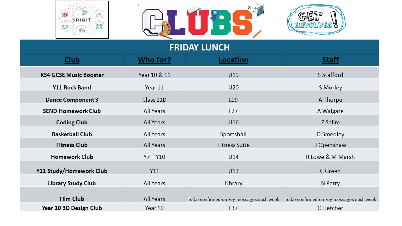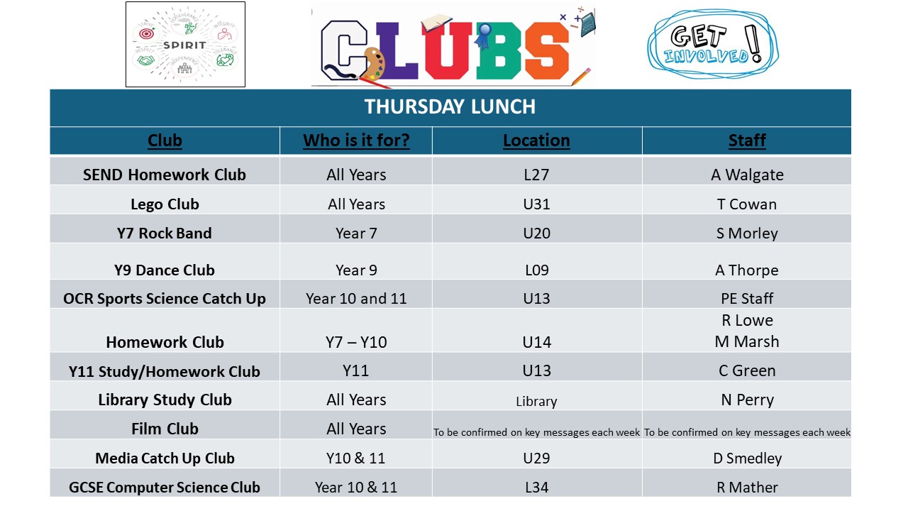 EXTRA CURRICULAR CLUBS 2025-26 (TERM TWO)